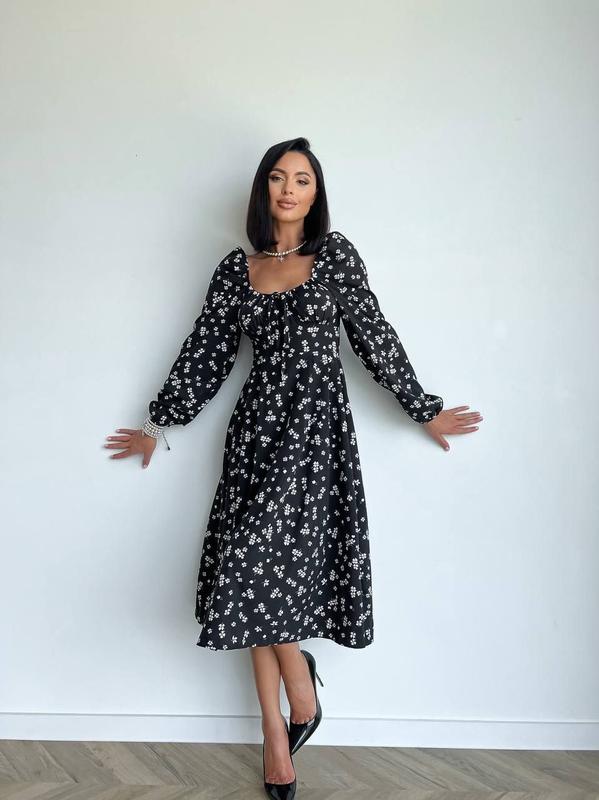 Модель 463 Жіноча сукня в квітковий принт Розмірний ряд S,M,L,XL Тканина турецький софт(приємна на дотик, не просвічувається) Кольори пудра, лаванда, блакитний, чорний Модель дуже романтична, довжина міді, на груді ґудзики, сідає дуже гарно на кожен тип фігури , за рахунок кльошу по стегнах приховує всі недоліки Застібається на блискавку у шві Супер якість