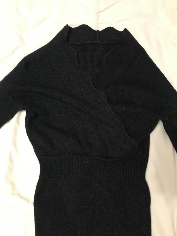 Чорне плаття з вовни і акрилу. Дуже ніжна тканина добре тягнеться і ляже по фігурі. Виріз з хвилями вигідно підкреслить груди