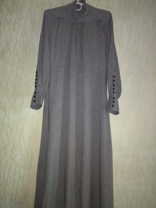 Стильне плаття з довгим рукавом,принт - гусяча лапка,довжина міді, розмір М