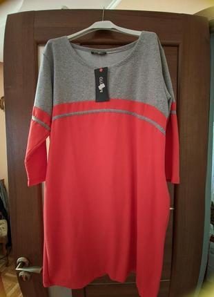 новое платье туника спортивного стиля. замеры:целая длин.86, пог 55,рукав от шеи 51,плечет 9. имеет кармашки, фасон бочонок. Куплено в Польше.