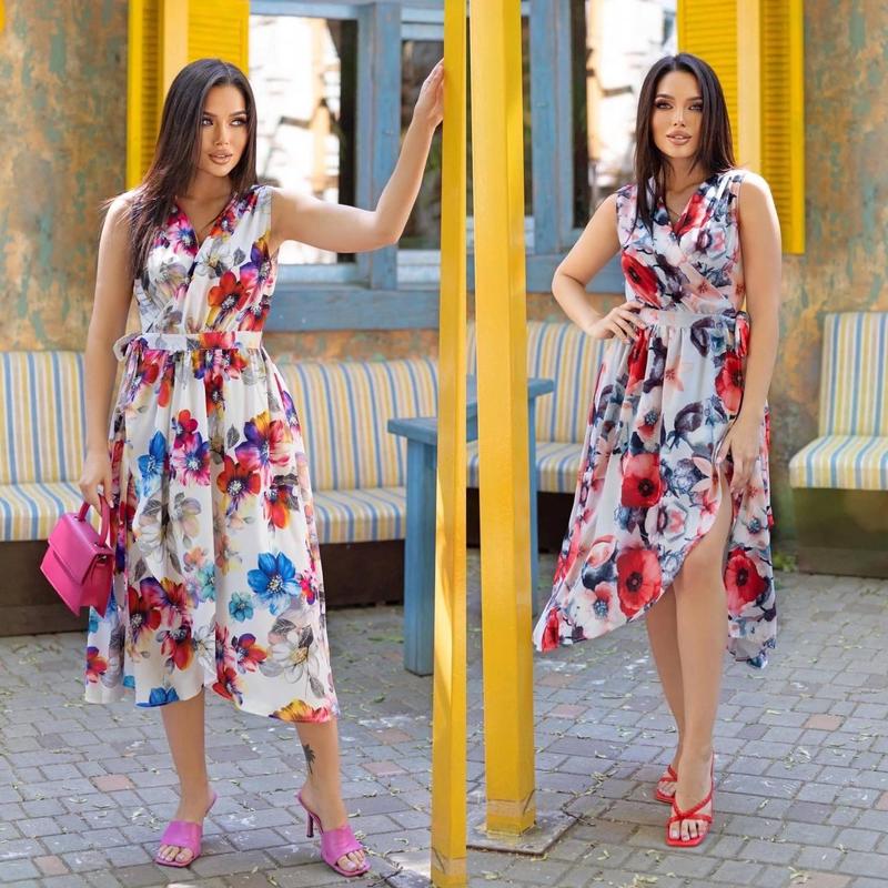 Модель 805 Сарафан на запах Розміри з бирки норма: 1 (42-44); 2(46-48); 3(50-52) Тканина: софт Колір: білий, небесно блакитний + принт Неймовірно жіночний, легкий і ніжний сарафан на запах стане чудовим варіантом для створення літнього романтичного образу. Параметри: Розмір з бирки 1 (42-44) Об'єм грудей: 94-98 см Талія: 76-80 см Довжина: 112 см Розмір з бирки 2 (46-48) Об'єм грудей: 98-104см Талія: 80-84 см Довжина: 116 см Розмір з бирки 3 (50-52) Об'єм грудей: 104-108 см Талія: 84-88 см Довжина: 120 см