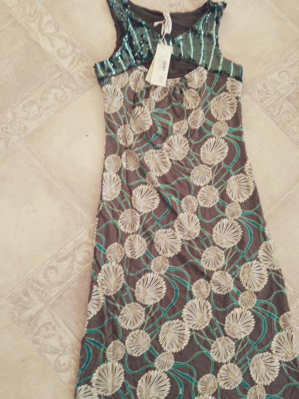 Гарна сукня італійського бренду PEG цікавого забарвлення, верх розшитий паєтками, розмір вказано 42 (З-М) Заміри: довжина-94см, ПОГ-45см, ПОТ-37см, ПОБІДИ=46см, тканина добре тягнеться
