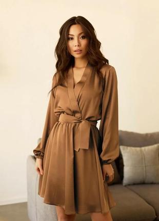 Параметры: Длина изделия от верхней точки плеча: S-M=95 см, L-XL=96,5 см Длина рукава: S-M=58,5 см, L-XL=59,5 см Тех. описание: Артикул: 1934.5045 Коллекция: Like a diamond Категория: гламурные / корпоративные / элегантные / вечерние / нарядные/праздничные Сезон: осень / весна / демисезон Фасон: с запахом / свободный / расклешенный / с пышной юбкой / с завышенной талией Материал: шелк Армани Цвет: коричневый Декоративные элементы: обтачка горловины, талия и низ рукава на резинке Горловина: V-образный вырез Вид рукава: длинный, втачной, пышный рукав, амадис Пояс: съемный Конструктивные элементы: разрезная талия, имитация запаха Комплектация: платье, пояс Уход за вещами: ручная стирка до 30° Обратите внимание!: Цвет изделия может отличаться, учитывайте цветопередачу камеры и монитора.