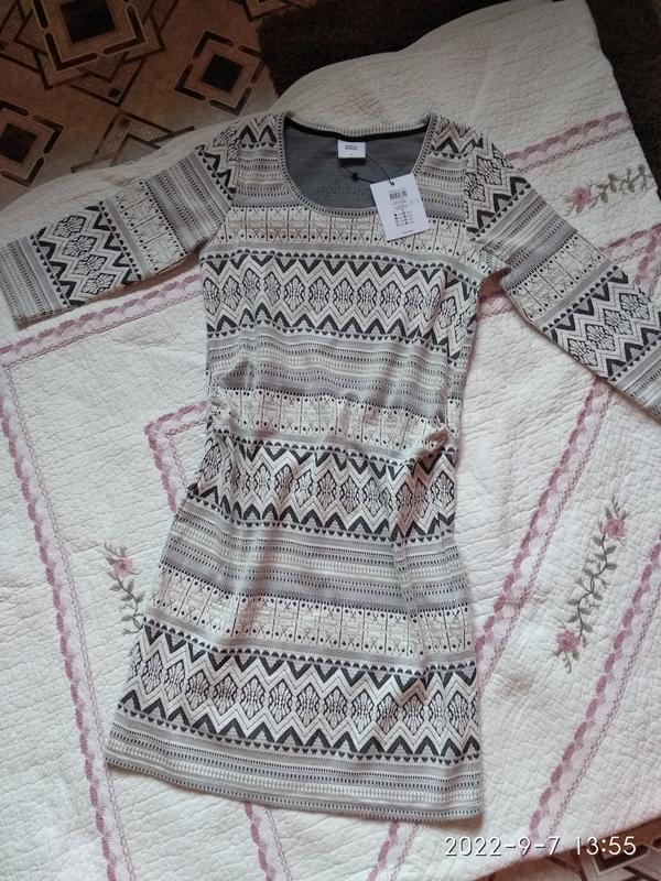 гарна, якісна фактурна сукня в орнамент. Рукав-3/4. Дов-97, п/о груд-45, тягнеться.
