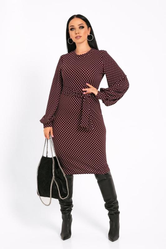 Новинка Сукня Модель № 7151-1 Ціна : 370 грн . ЯКІСТЬ ВІДМІННА Розмір : 46-48; 50-52; 54-56; 58-60 Тканина : трикотаж кукурудза ГАРНА РОЗТЯЖНІСТЬ Довжина сукні : 108 см . Довжина рукава : 68 см . Стильна сукня приталеного крою з широкими рукавами на манжеті , пояс з тканини йде в комплекті . Тканина гарно тягнеться та дуже приємна до тіла .