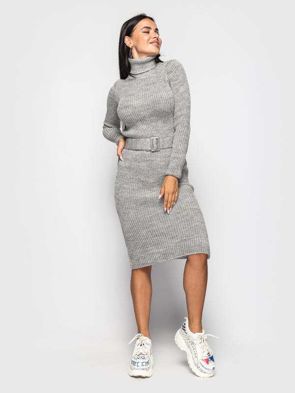 Довга сукня гольф, в комплекті пояс з прямокутною пряжкою. Тканина: шерсть із акрилом. Розмір : універсальний.