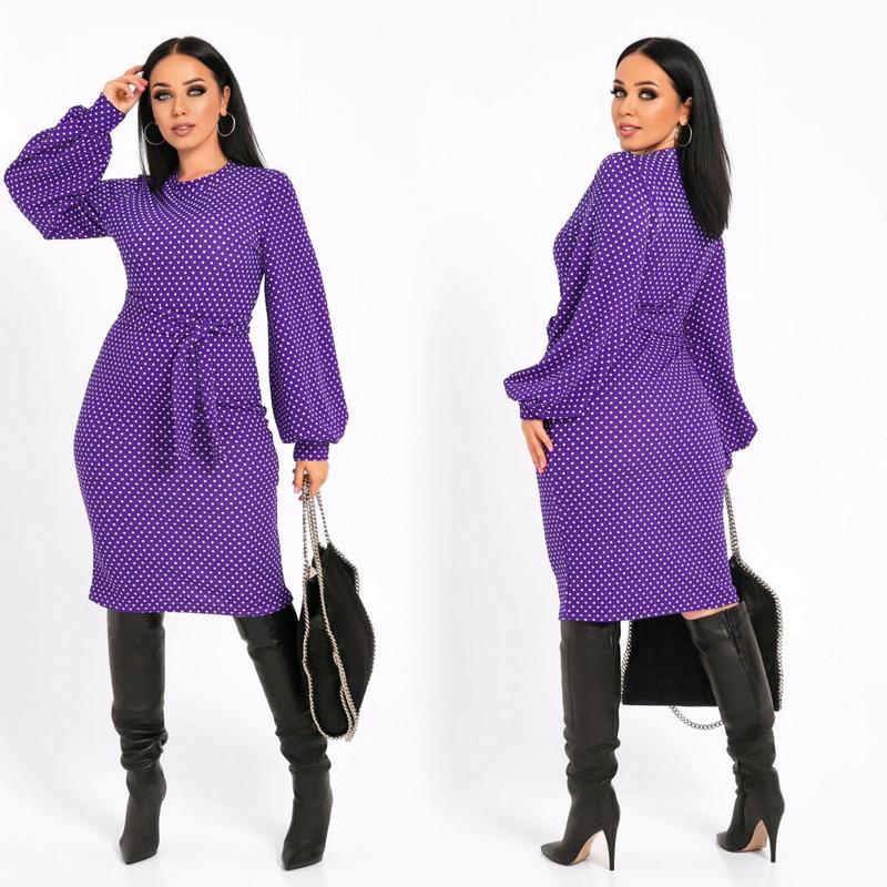 Сукня Модель № 7151-1 Розмір : 46-48; 50-52; 54-56; 58-60 Тканина : трикотаж кукурудза ГАРНА РОЗТЯЖНІСТЬ Довжина сукні : 108 см . Довжина рукава : 68 см . Стильна сукня приталеного покрою з широкими рукавами на манжеті , пояс з тканини йде в комплекті . Тканина гарно тягнеться та дуже приємна до тіла .
