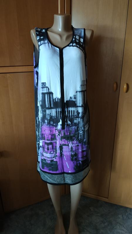 Красивое платье р. 44 Состав и фирма на фото. Ог-55 От-55 Об-60 Длина -99 Плечи-33 Пройма-23 См мои вещи много качественных и фирменных
