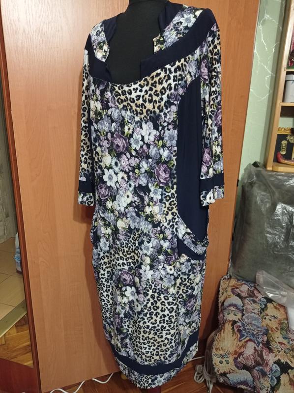 Гарне, яскраве плаття, в хорошому стані. Верх - рукава - 3/4, низ - спідниця, наче бочонок. Розмір є 54, тканина - гарно тягнеться, є кишені. Довжина - 109см; Ширина плечей - 44+см; Довжина рукава - 45см; Полуобхват по біцепсу -19+см; ПОТ - 53+см; ПОГ -58+см; ПО по стегнах - 62см.(виміри в спокійному положення, без натяжок). Фото зроблено на манекені 34 розміру, беріть це до уваги. Можете вибрати до купівлі собі подарунок (лоти "Подарунок"), дивіться мої оголошення. Повернення або обміну немає, будь ласка, обдумано робіть покупку. Оплата і доставка: Оплата на карту ПриватБанк Ощадбанк - 100% Якщо користуєтесь "Безпечна оплата" (через Шафа), прошу втричі уважно продумувати покупку, задавати питання, просіть фото, щоб не повертати, зобов'язуючи продавця сплачувати доставку вам і назад, давайте поважати один одного! Відправка Новою поштою, Justin, і Укрпоштою. Пересилка за рахунок покупця.