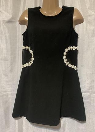 Трикотажное платье с гипюровой вставкой по линии талии . Замеры : длина- 81см., плечи - 33см., ПОГ -,45см., ПОТ - 44см., ПОБ - 51см