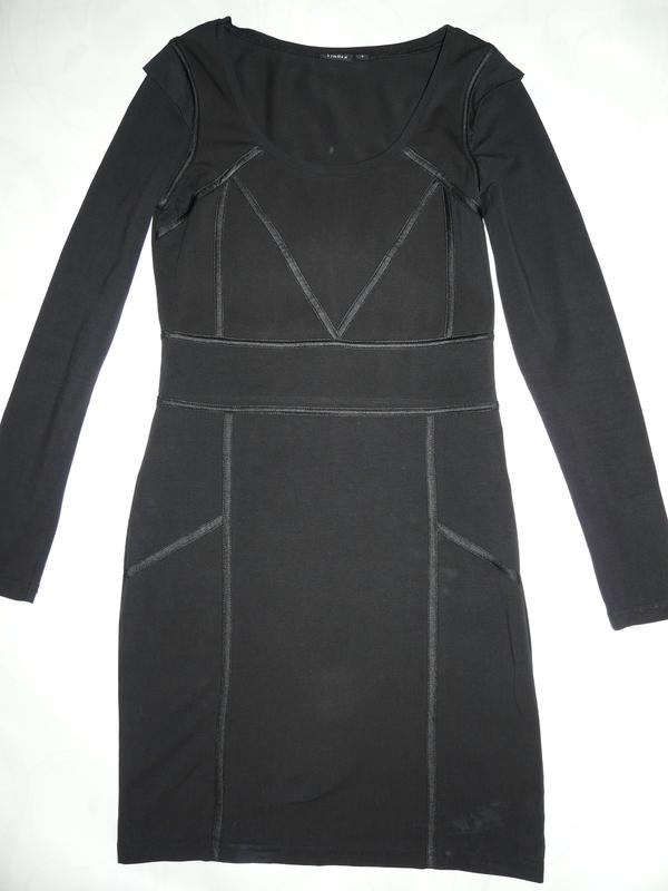 Трикотажна сукня з оригінальним графічним декором. Довжина 93см, рукав 64см, ПОг 42+см, ПОт 38см, ПОб 46см. Тягнеться.
