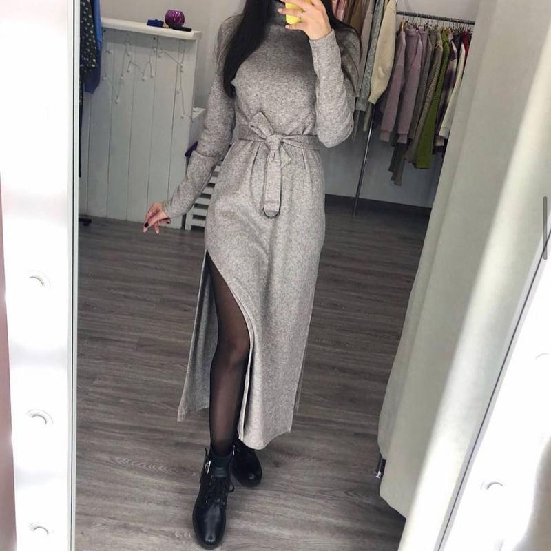 Тепла та зручна сукня в довжині міді ! Сукня з разрізами , в комплекті йде пояс БЕЗКОШТОВНА ДОСТАВКА при купівлі від двох будь-яких товарів Колір: чорний, мокко, сірий Розмір: 42-44, 46-48 Тканина: ангора рубчик