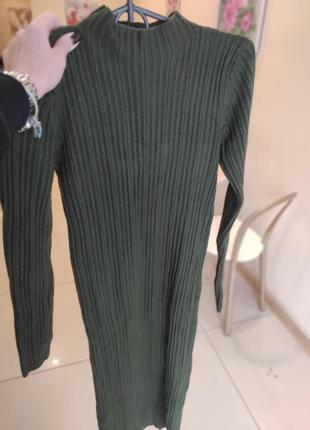 Тепле плаття міді лапша ( в рубчик) темно зеленого кольору