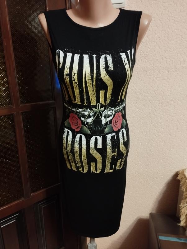 Фірмове плаття,туніка чорного кольору з тематичним принтом. Легкий шовковистий стрейчевий трикотаж хорошої якості 95%віскоза,5%еластан. Плаття приталеного крою. Стан відмінний,нової речі. Заміри по верху виробу: ширина в плечах-34см. Пог-40см,Пот-31см. Поб-41см. Ширина по низу плаття-34,5см. Довжина по спинці-91см. Без торгу.