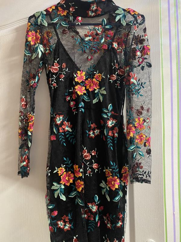 Чорне плаття 2в 1 з вишивкою квітів , спинка відкрита , розмір xxs .Нове