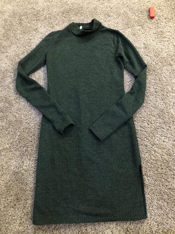 Тёплое платье цвет изумрудный ткань рубчик ,сбоку разрез, на рукавах есть разрезы для большого пальчика ,платье новое подойдёт на размер XS