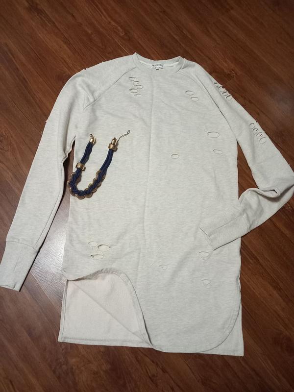 Худи платье с трендовыми дырками, длинный рукав с отверстием на большой палец. С интересными разрезами с низу Пог 56 длина рукава от горловины 80 длина по спинке 98