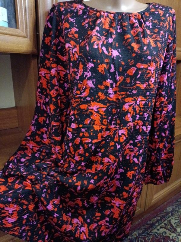 Легенька відмінно тягнеться сукня с довгим рукавом.Пог 56(112) см,довжина 90 см,рукав довжина від горловини 74 см.Стан нової річі.