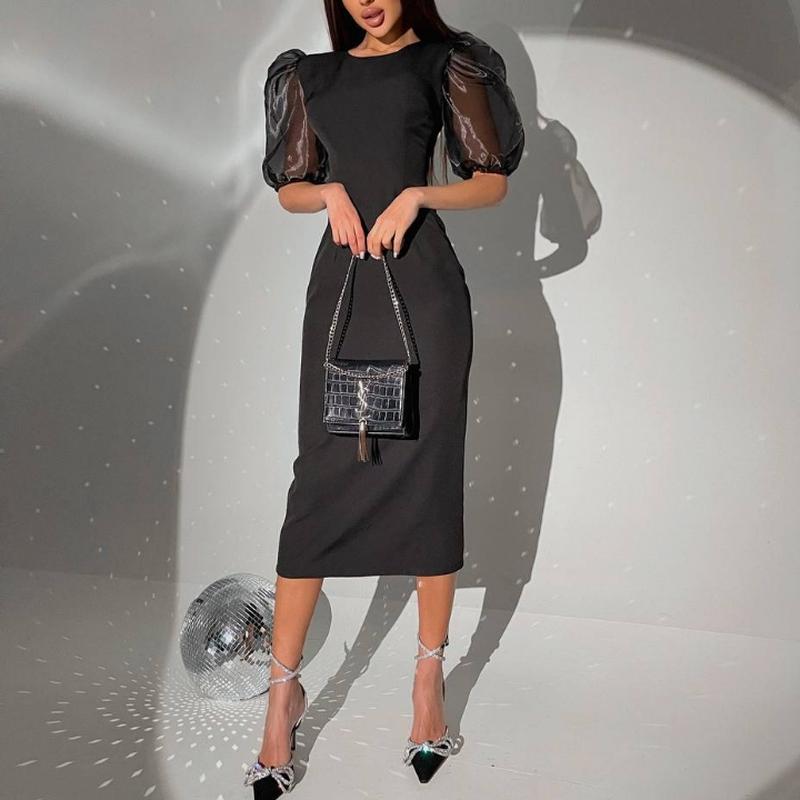 #Платье Артикул: 811-259 Цвет: черный Размер: 42-44, 46-48 Материал: костюмка, рукав органза Фото Реал