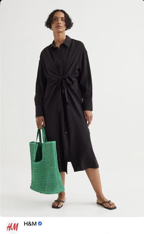 Сукня сорочка з декораративною зав’язкою на талії. Сукня на довгий рукав, спущена лінія плеча, рукав має високий манжет; сукня збоків з розрізами. Склад: 100% віскоза Розмір S ( оверсайз ) Довжина 120см Рукав від комірця 77 см ПОГ 60 см ПОТ 50 см Стан нової речі