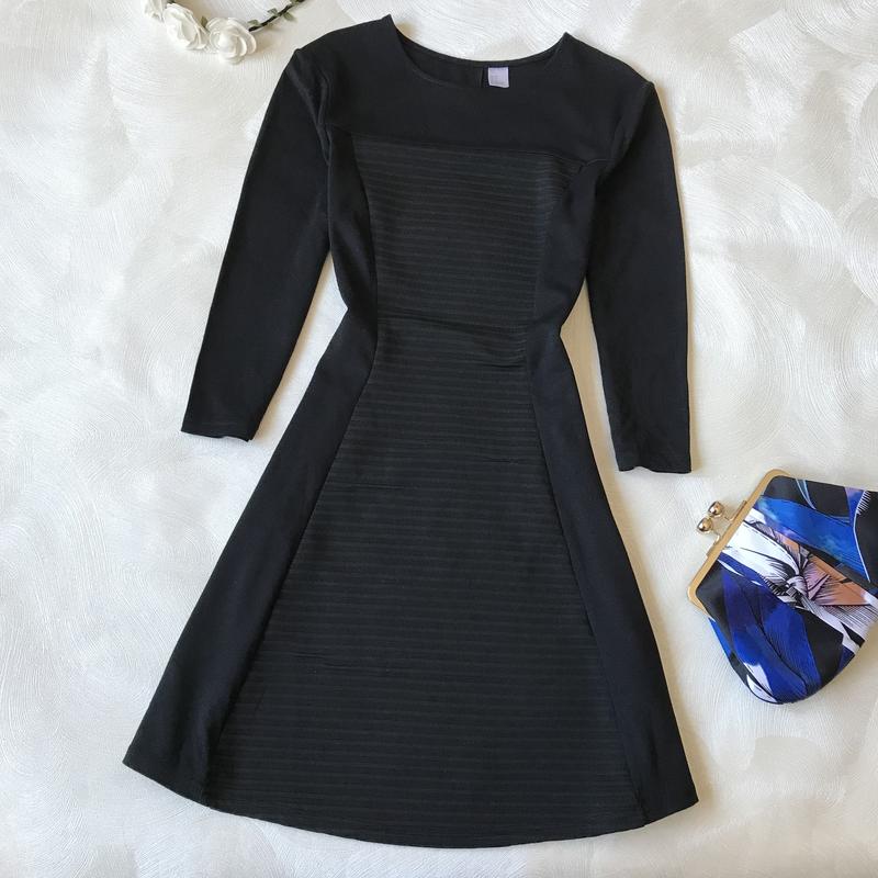 Чорна сукня H&M з рельєфної тканини ✔️Приталена, талія не відрізна ✔️Розмір S, довжина - 80 см, ПОГ - 38-41 см, ПОТ - 31-33 см ✔️Тканина: 98% поліестер, 2% еластін ✔️Стан гарний, є незначні сліди носки