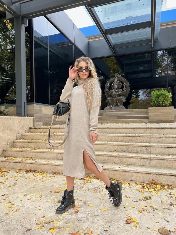 Сукня Арт. : 9004соф Розміри : 1(42-46) 2(46-50) Опис: тепла двостороння ангора - розмір 1(42-44) ОГ-112 ОС-100 рукав від горловини - 72 довжина - 108 - розмір 2(46-50) ОГ-120 ОС-112 рукав від горловини 74 довжина 108 Тканина: двостороння ангора