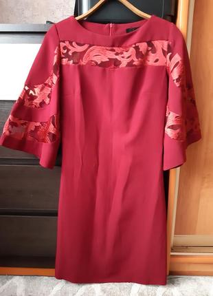 Сукня колір бордо. На рукавах сітка. Одягнена 1 раз Довжина 92 Рукав 40 Пог 40 Пот 39 Поб 46 Тягнеться
