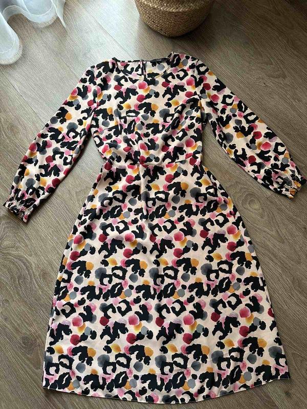 ПОГ 47, ПОТ 37, ( спинка на талии на резинке) плечо 10, рукав 56,длина спереди платья 102, 110 Платье без следов носки Нарядное, красивый принт На бирке указан размер 8 подойдет и на 10 Известный бренд