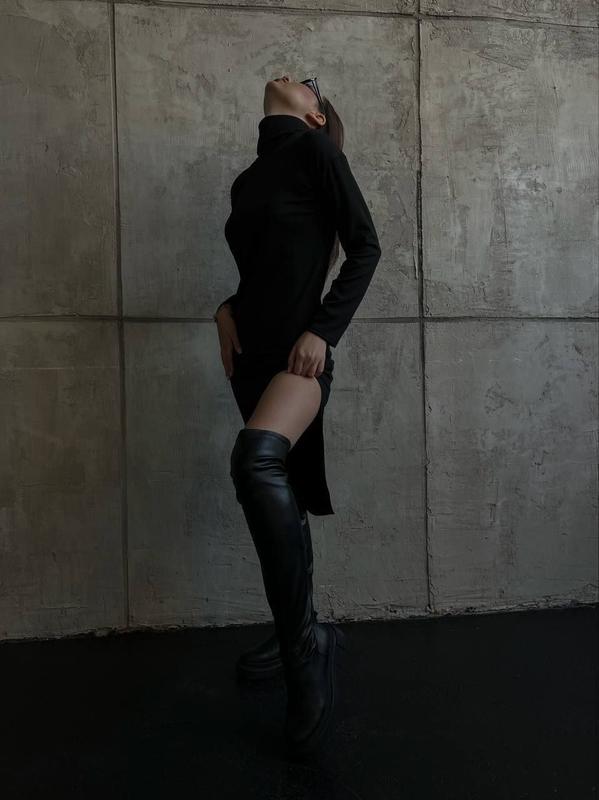 💥 Реал фото💥 Сукня Модель vi 004 Тканина: щільний рубчик Колір : чорний Розмір : 42/46 48/50 🏷 Ціна: 689грн 🌿 Сукня зі щільного рубчика з розрізом по нозі вільного крою - це аутфіт, щоб стильно пережити холодний сезон 🌿