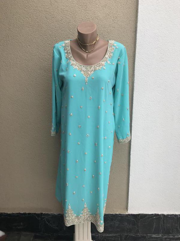 Восточное,этно платье,туника,эксклюзив.золотой вышивкой,ручной работы,цвет тифани.,этно.