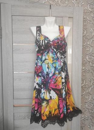 Ярке платтячко- сарафан на літо Стан нового ,літом в ньому не гараче тканина масло Заміри :довжина 96 см пог 42-55 дуже добре тягнеться пот-38-54см поб 53-67см низ по-100см, заміри робила разом з мереживом(гарно лежить по фігурі)