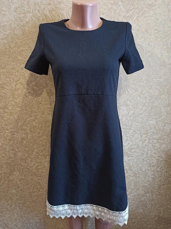Сукня зі щільної тканини у відмінному стані! Довжина 85 см Довжина рукава 17 см, ширина 15 см Напівобхват грудей 43 см Напівобхват талії 38 см Низ 57 см