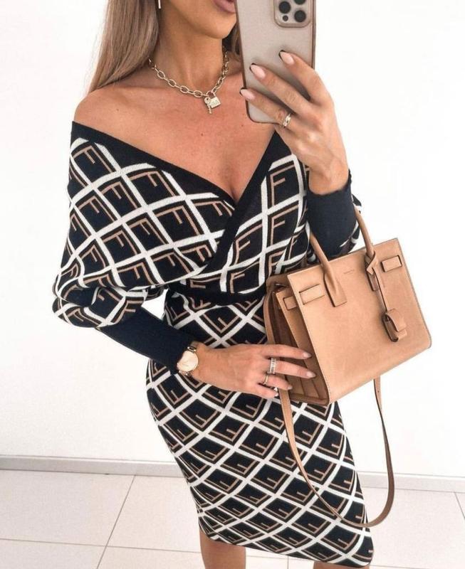 Облягаюча сукня по сілуєту у модний принт. Можна носити з відкритими плечима. Дуже жіночне та гарне. Довжина 104 см, рукав 72 см. ОТ 62-78 см, ОГ -- вільно, ОС -- 80-96 см. Склад: в'язка акрил/поліамід Розмір: 44-48 Виробництво: Туреччина