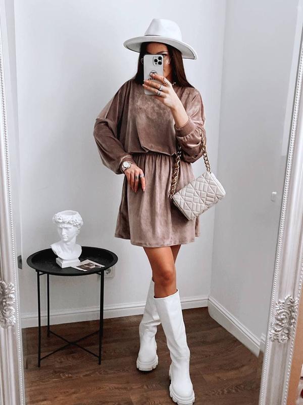 ТОП 🔝🔝🔝 В НАЯВНОСТІ🔝🔝🔝 🤎🤍🤎СУКНЯ🤎🤍🤎 Арт.V4004 Тканина: велюр Колір: шоколад, бежевий,бордо Розмір: one size Опис: Стильна велюрова сукня вільного крою з поясом на резинці.