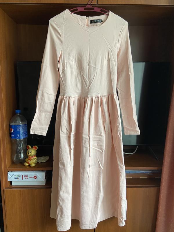 Сукня кольору пудра. Є приховані кишені, дуже добре тягнеться. Вдягала два рази