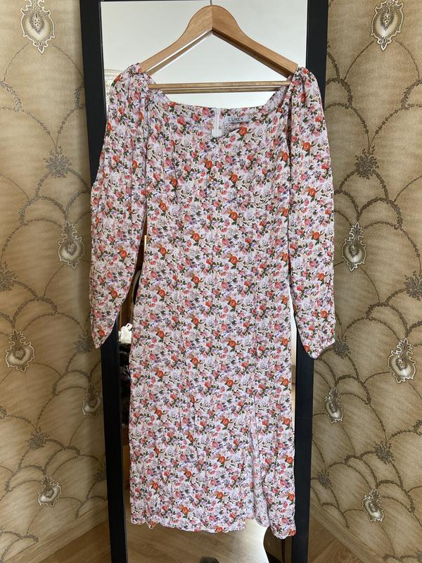 Летнее платье миди в цветочный принт, состояние нового, присутствует разрез на ножке