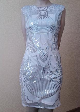 красивое легкое платье вышитое бисером размер 36 состояние идеально Стоило в шкафу