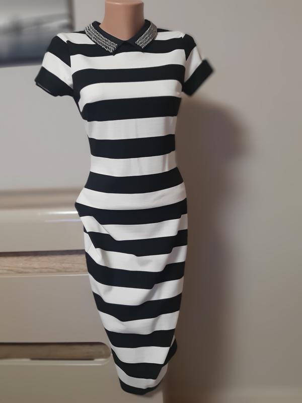 Красиве плаття по фігурі.Тягнеться.На комірці нашиті намистинки.Тканина добре тримає форму.Розмір 10. Добре сяде на SM.Заміри за запитом.