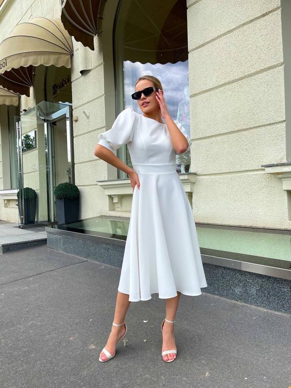 Потрясающее, очаровательное и очень красивое платье в длине миди, с пышным рукавчиком и кокеточным вырезом по спинке😍Это платье идеально во всем💫 Размер: S - M Цвета: беж, пудра, молочный, голубой, красный. Возможна индивидуальная пошивка в больших размерах, по Вашим параметрам, срок 2-4 рабочих дня, цена +100 грн