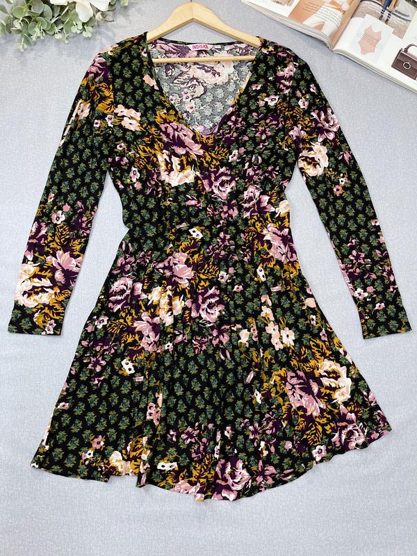 Платье в цветочный принт Состав 100% Вискоза Без подкладки, если смотреть на свет слегка просвечивает Не прозрачное ПОГ 54 см Длина 97 см Длина рукава 64 см