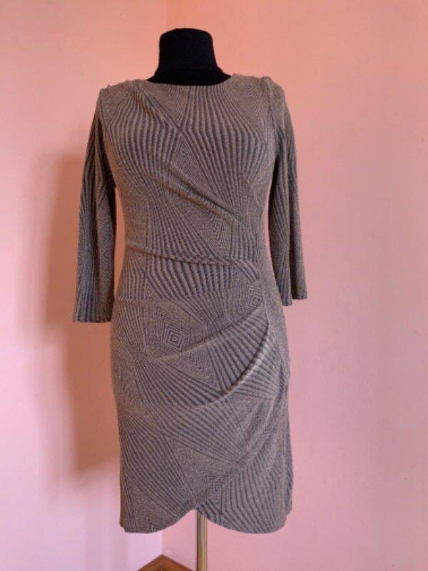 Класне стрейчеве плаття, розмір ХЛ, та М і Л теж класно сидить. Довжина- 92см, плечі- 40см, рукав-50см, пог- 49см, пот-50см, поб-52см.