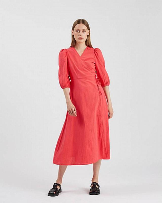 сукня міді на запах вільний крій v-подібний виріз горловини короткий рукав колір: кораловий