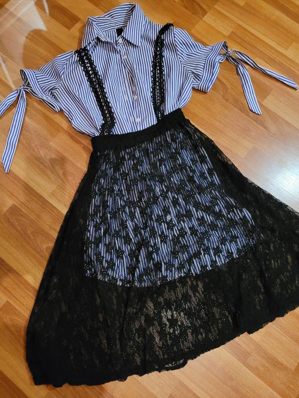 сукня - рубашка. оригінальна сукня, юбу і рубашкуможливо комбінувати з іншими речами. ПО по грудях 46, довжина рубашка 74,, ширина по бедрам 50. довжина юбки від талії 64