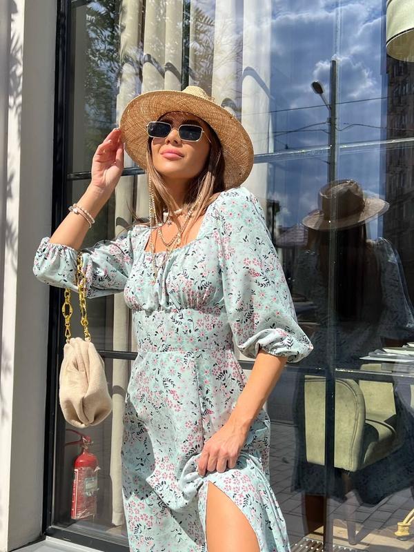 Мод 680/54 Тканина - Штапель Колір - синій , м’ята , білий Розмір: S-M , L-XL На грудях резинка На спинці потаємна змійка Впереді боковий розріз на юбці