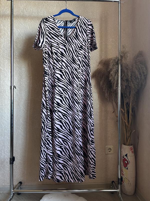 Wallis 12 p-14 Віскозна сукня міді 🦓 Пог 52 пот 45 пл 40 рук 25 по стег 60 топ43 довж 130 розрізи по 40 см Ц398