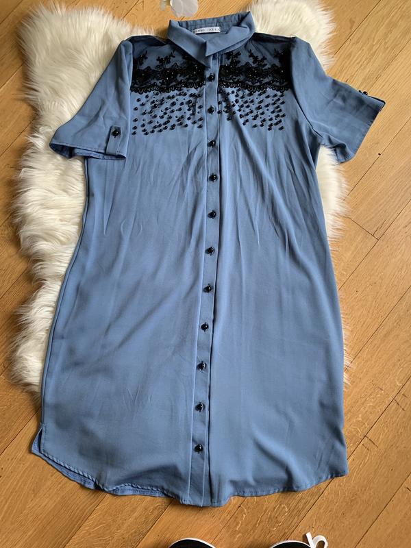 Сукня голубого кольору, фото не передає. В комплекті поясок такий же з тканини. Фактично нова без дефектів. за детальними замірами звертайтесь в лс