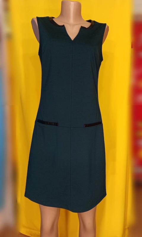 Плаття трикотажне зі вставками еко шкіри. ПОГ 42. Довжина 87 від плеча.