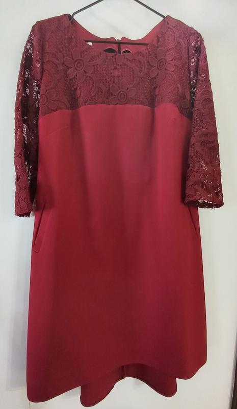 Сукня бордового кольору - L довжина - 86см спереду та 101см - зворотня сторона у грудях - 92см талія - 90см довжина рукава- 44 сукня має кишені (якісного матеріалу та достатньо великі) - це великий плюс, оскільки вона вільного покрою і можна туди покласти потрібні речі і не потрібно носити сумочку!