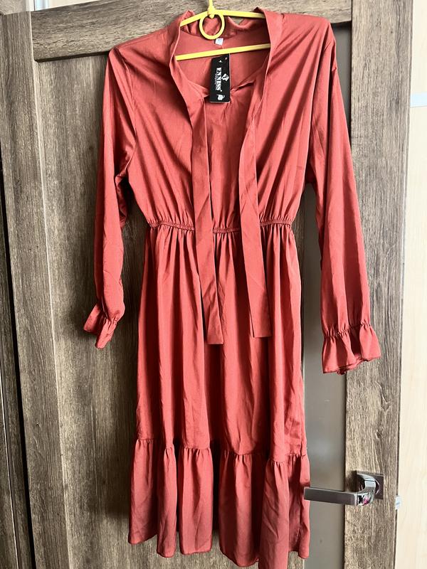 Нова, на бірці стоіть розмір L , але я купляла на М. Талія на резиночці. Матеріал - щось середнє між атласом ф шифоном)