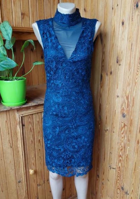 стан нової речі р ХС, вказаний С , маломірить шикарна сукня , ажурна колір синій тканина не тягнеться знизу підкладка ззаду блискавка об 43-43,5 от 33 ог 42-43 довжина 95